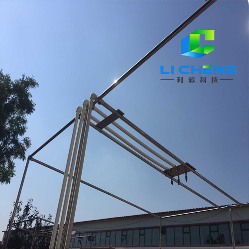 熱電渡管,管徑為40 mm,立柱式的架設。降雨層面分成三個層面。總體四路系統,每種系統的一路和另一路對應成疊加降雨方式。